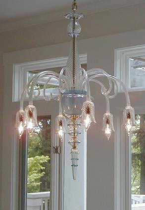 This Six arm Chandelier is all hand blown glass.